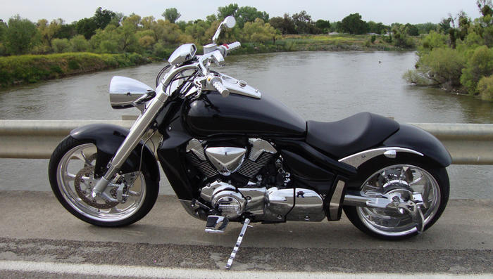 The Suzuki M109 delivers the goods and the aftermarket delivers the magic to make a machine that looks tough and runs hard enough to back down from nothing! I have a few hard runners (Rocket III, VTX 1800, 1700 T'bird, Ducati Diavel) and this one runs very strong!
